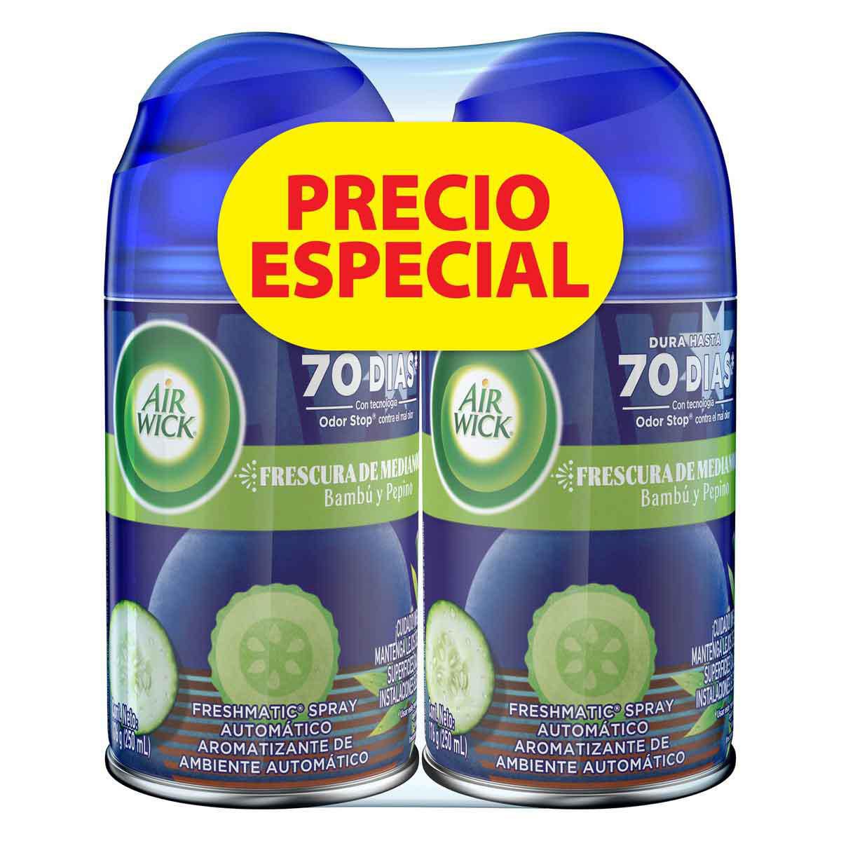 Aromatizante Air Wick repuesto difusor con bambú y pepino, pack 2 piezas. Recargas para difusor que perfuma ha... Ver más