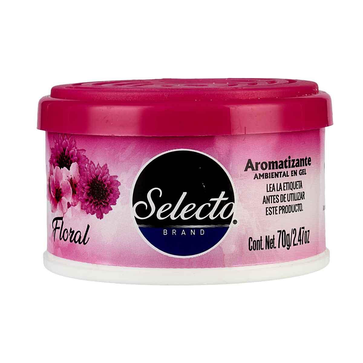 Aromatizante ambiental Selecto Brand en lata, formato gel con fragancia floral, contenido 70 g. Perfuma habita... Ver más