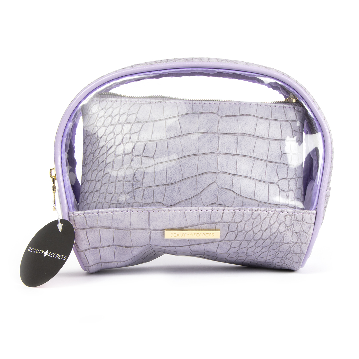 Cosmetiquera doble de Beauty Secrets en diseño Purple Cocodrile con dos compartimentos para organizar y transportar productos de belleza con estilo. Material resistente de fácil limpieza para uso diario o viaje. Incluye 1 pieza.