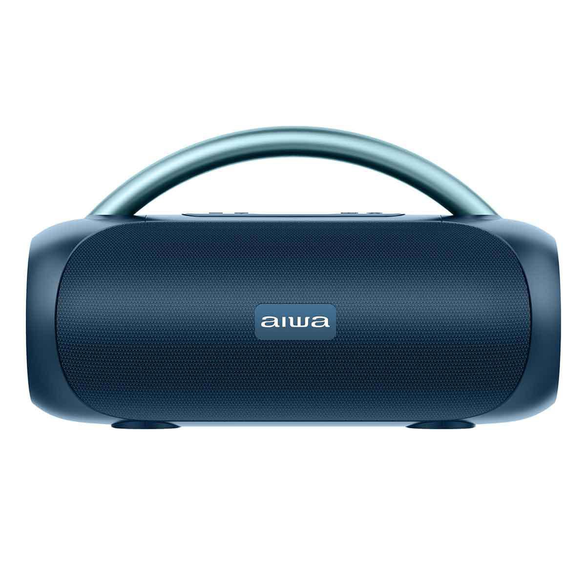 Bocina portátil Aiwa 20W azul, sonido potente, Bluetooth inalámbrico, batería duradera, uso versátil.