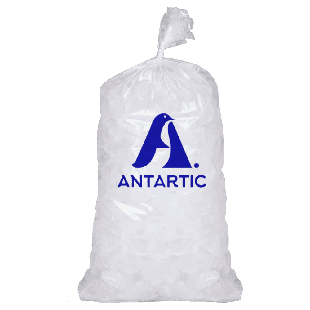 Hielo purificado marca Antártico en presentación de 5 kilos. Ideal para refrescar bebidas siempre.