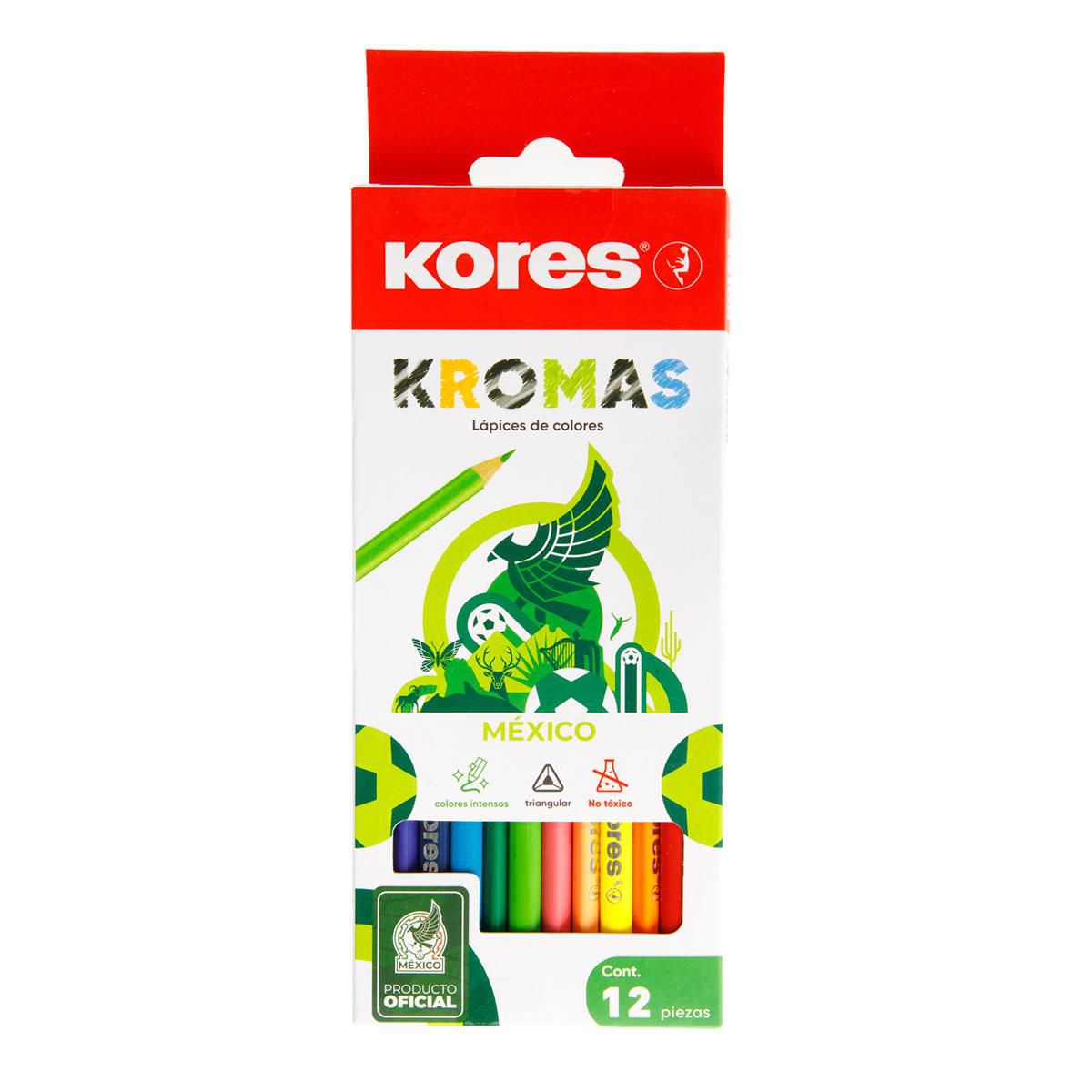 Lápices de colores Kores 12 piezas triangulares, colores vibrantes, cómodos, para expresión artística.