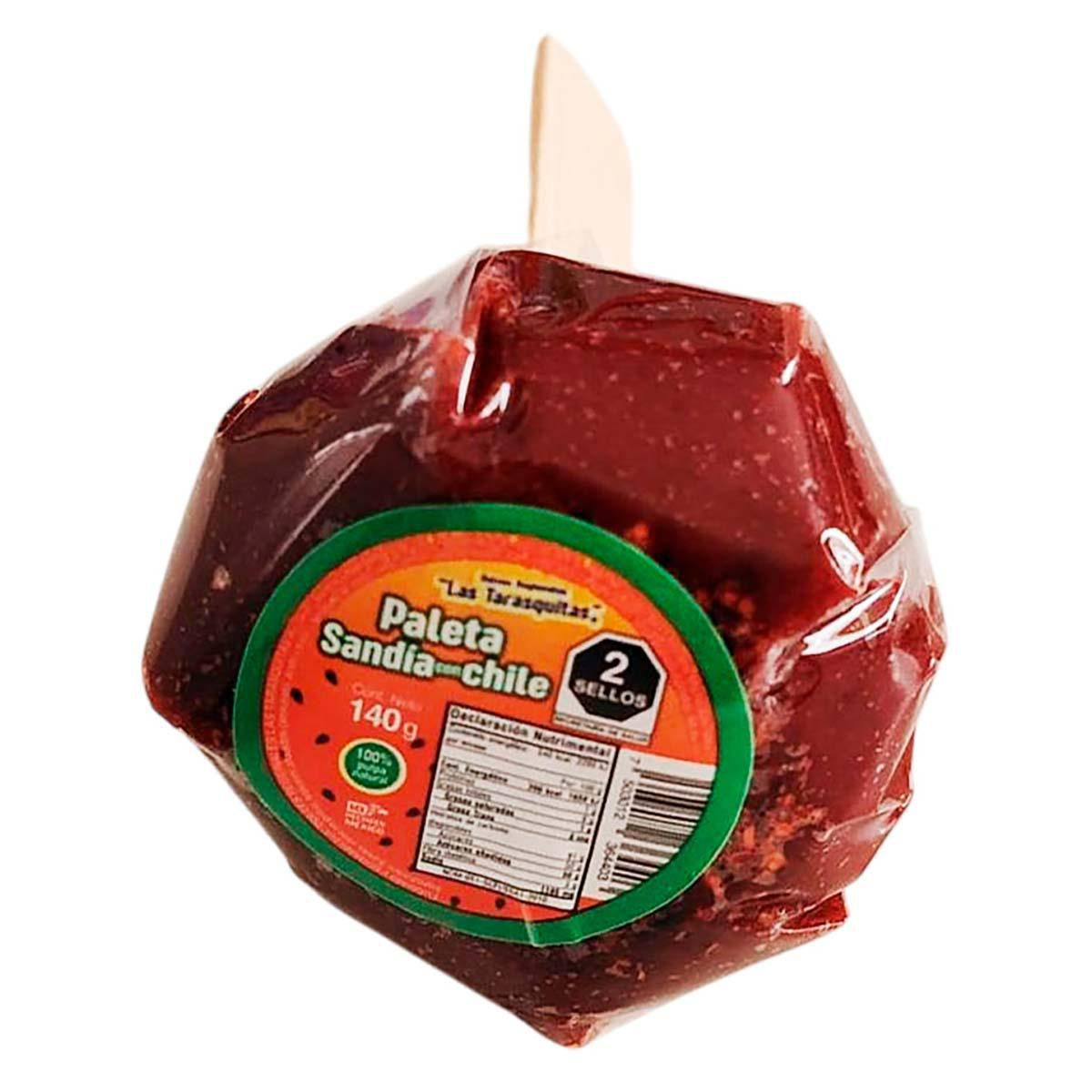 Paleta sandía Las Tarasquitas con chile en presentación de 140 g. Dulce mexicano picante con sabor frutal. Ide... Ver más