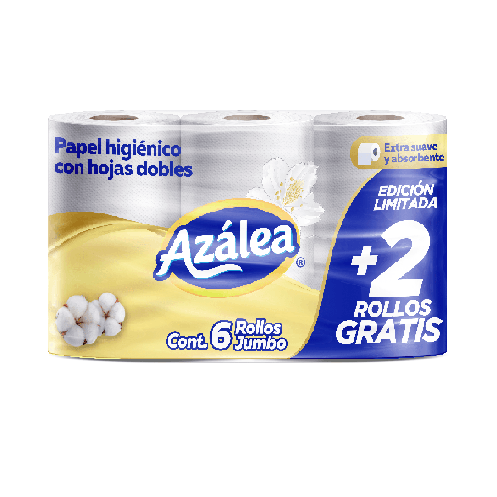 Pack promocional Azalea con 4 rollos más 2 de regalo. Papel higiénico de excelente calidad y suavidad. Mejor p...Ver más