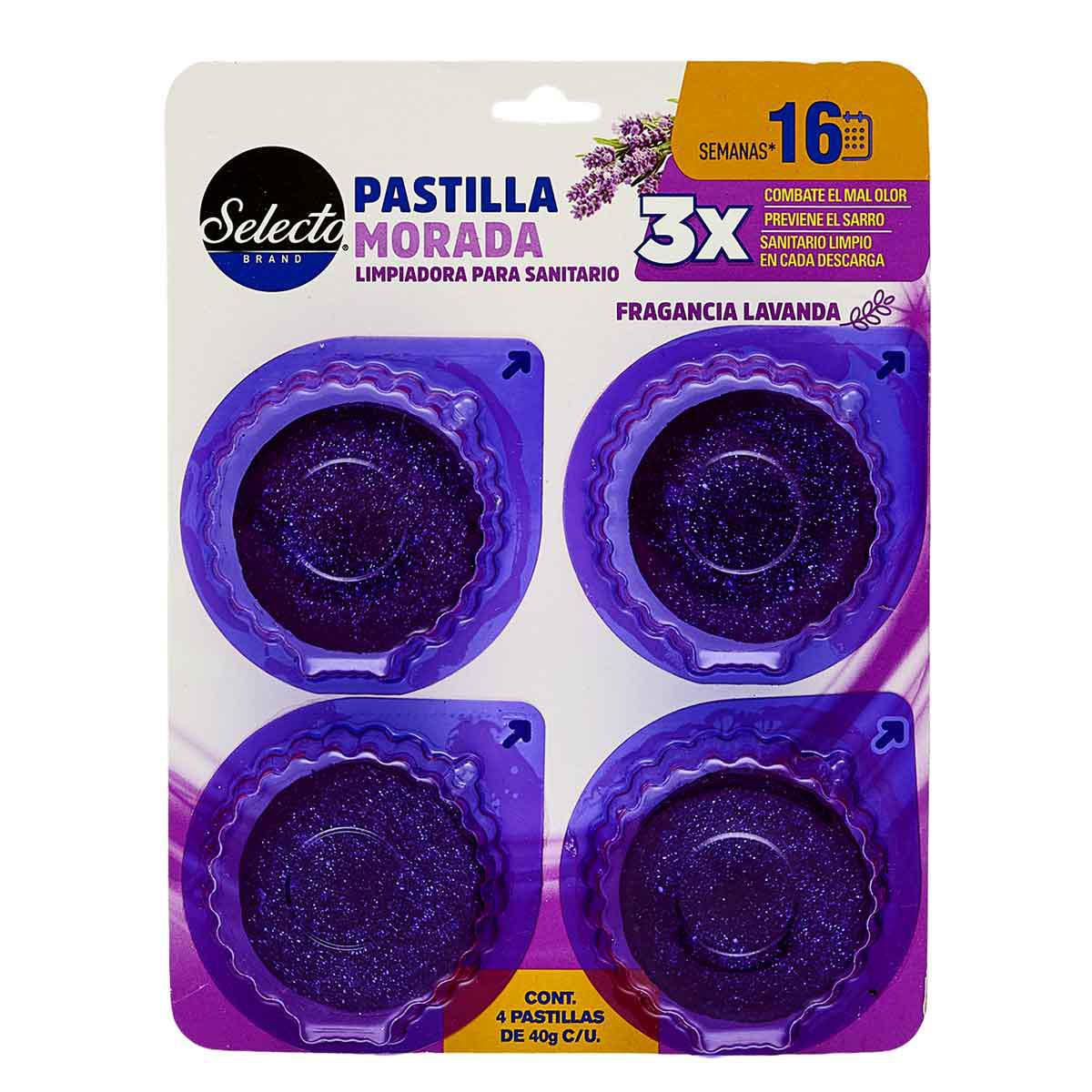 Pastilla sanitaria para tanque Selecto Brand aroma Lavanda, pack 4 piezas de 40 g. Limpia, perfuma y colorea a... Ver más