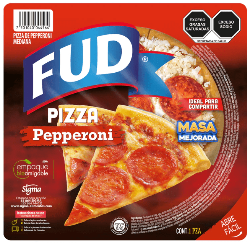 Pizza Fud Two Pack: pasaboca congelado tamaño doble. Comida rápida conveniente para toda la familia. Fácil preparación.