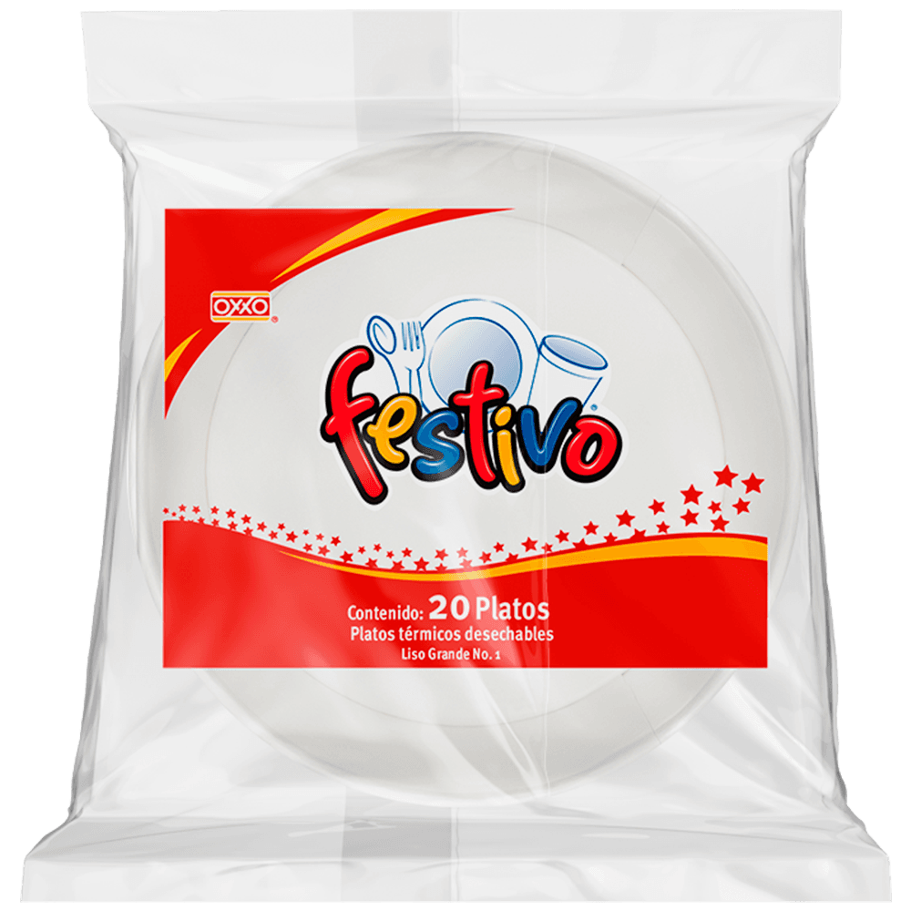 Platos Festivo número 10 grandes para celebraciones especiales. Servicio desechable para muchos comensales.