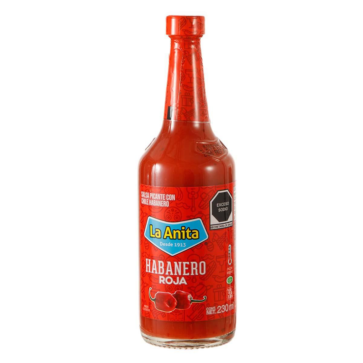 Salsa La Anita Habanero Roja en presentación de 250 ml. Condimento líquido picante mexicano para tacos, antoji... Ver más