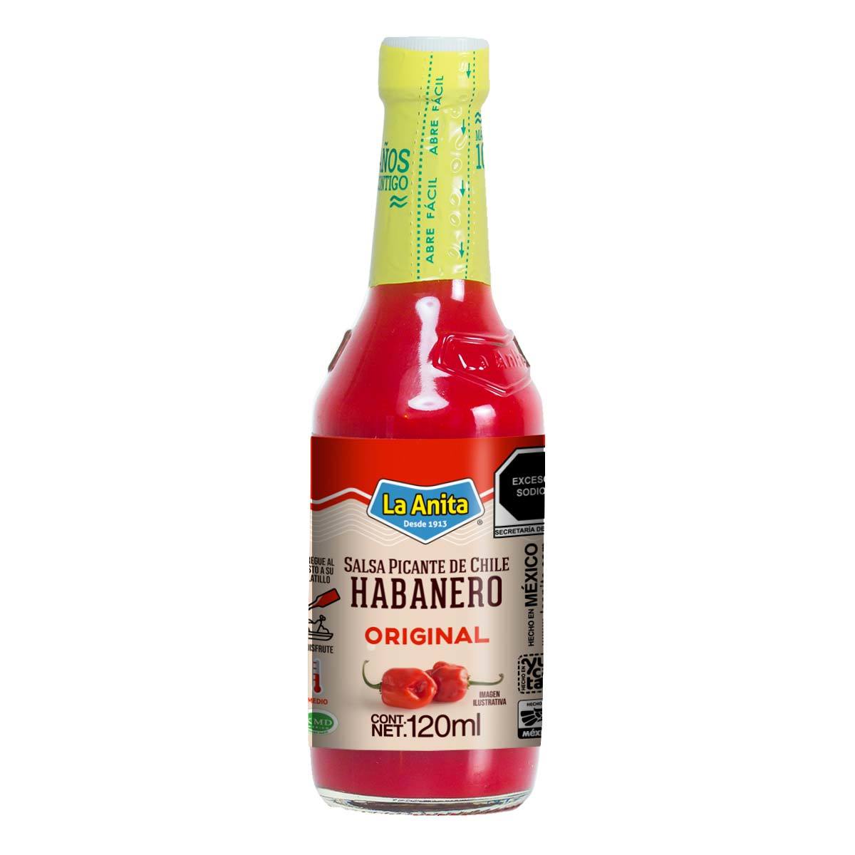 Salsa La Anita Picante con habanero rojo, presentación de 150 ml. Condimento líquido picante para tacos, antoj... Ver más