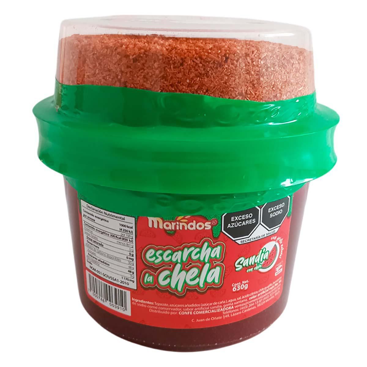 Sandía con chile Escarcha La Chela en presentación de 630 g. Botana frutal picante con sabor concentrado. Idea... Ver más