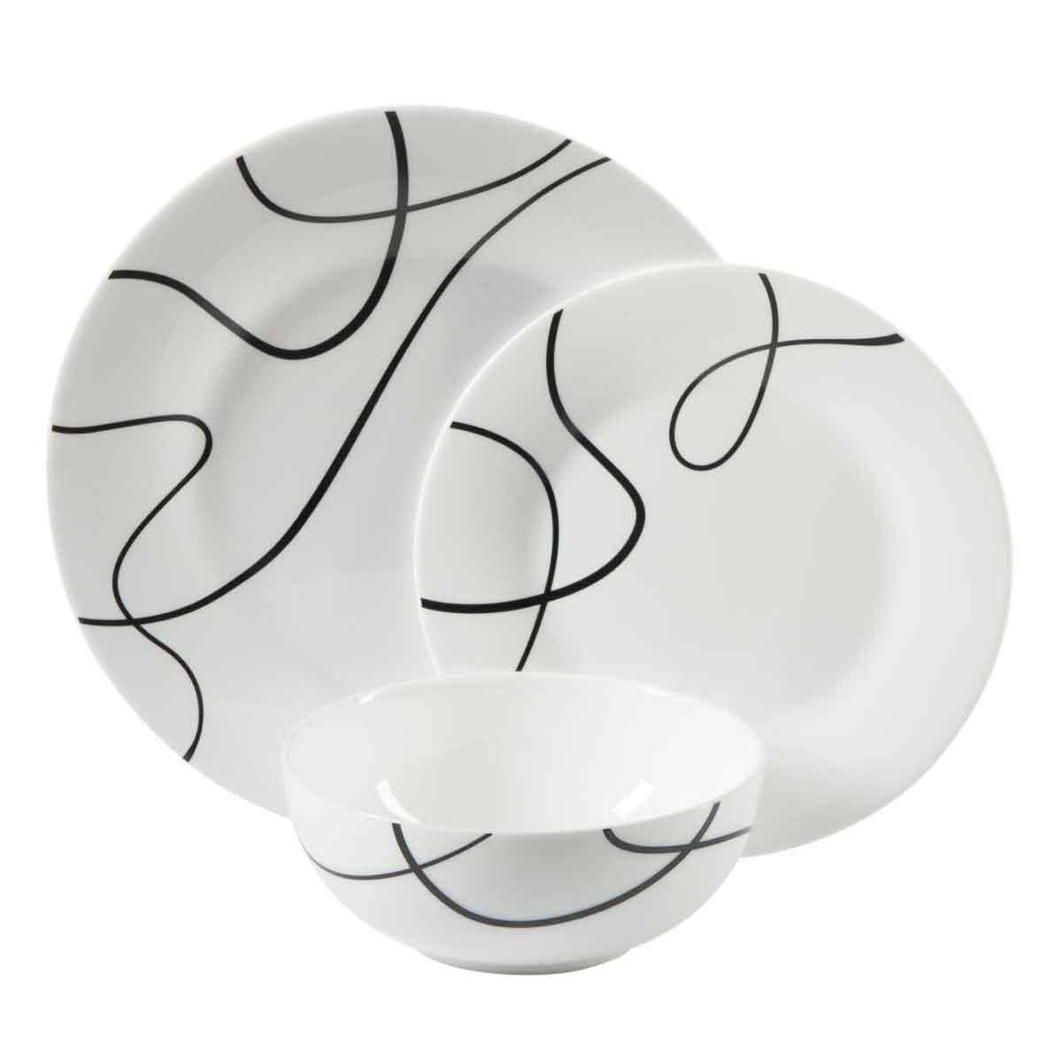 Set de vajilla Gibson Opal de 12 piezas línea, juego completo de mesa elegante moderna