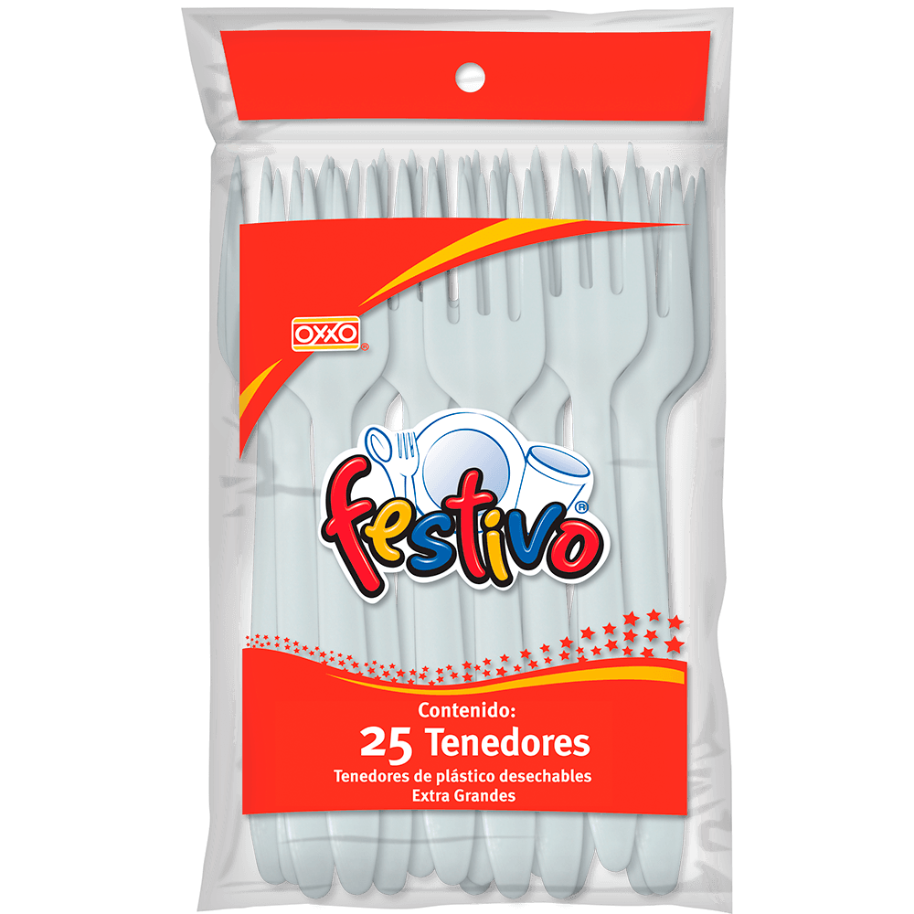 Paquete de 25 tenedores tamaño jumbo ideales para fiestas y celebraciones resistentes y económicos.