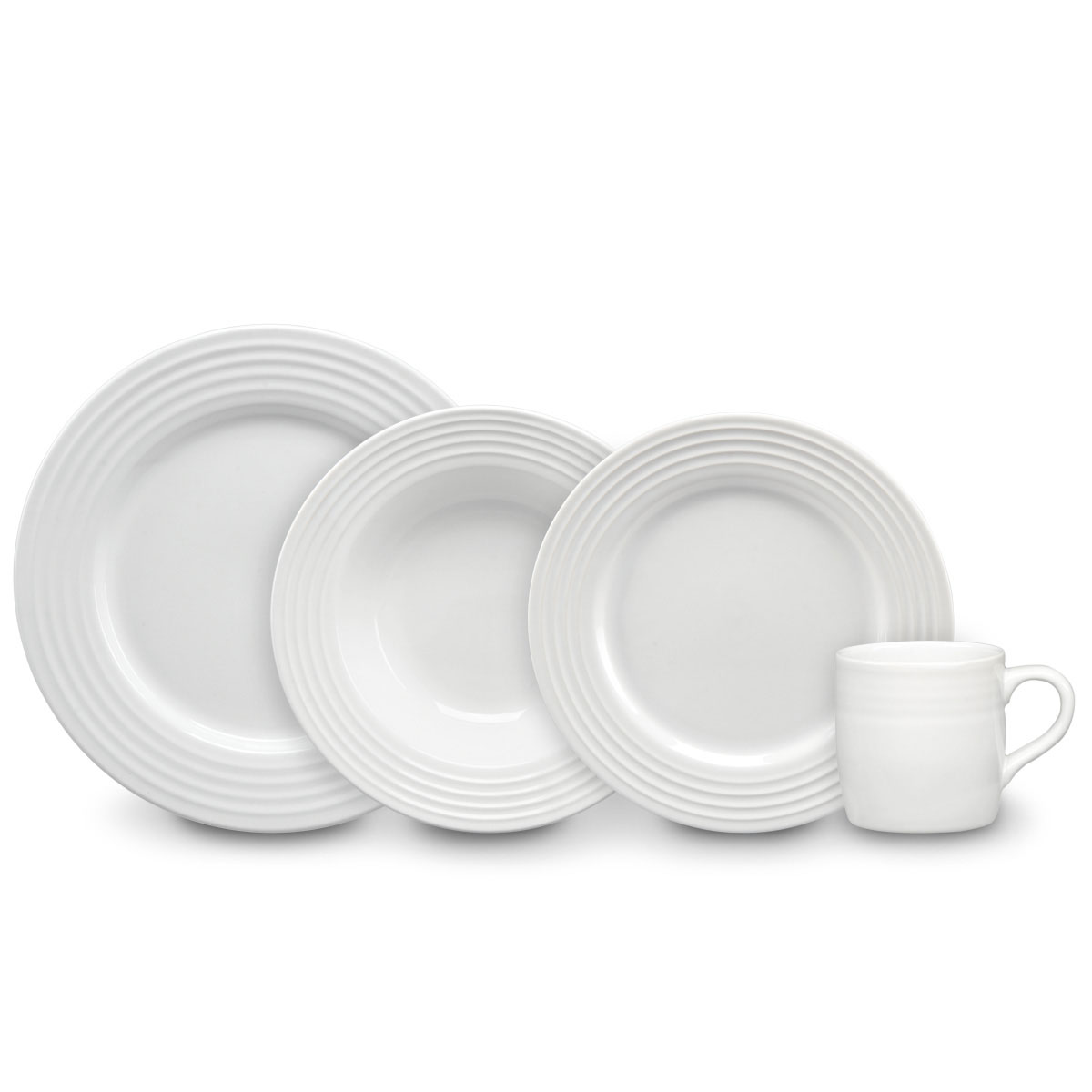 Vajilla de 12 piezas modelo Emboss Circles. Servicio para 4 personas con platos llanos, postres y tazones, dis... Ver más