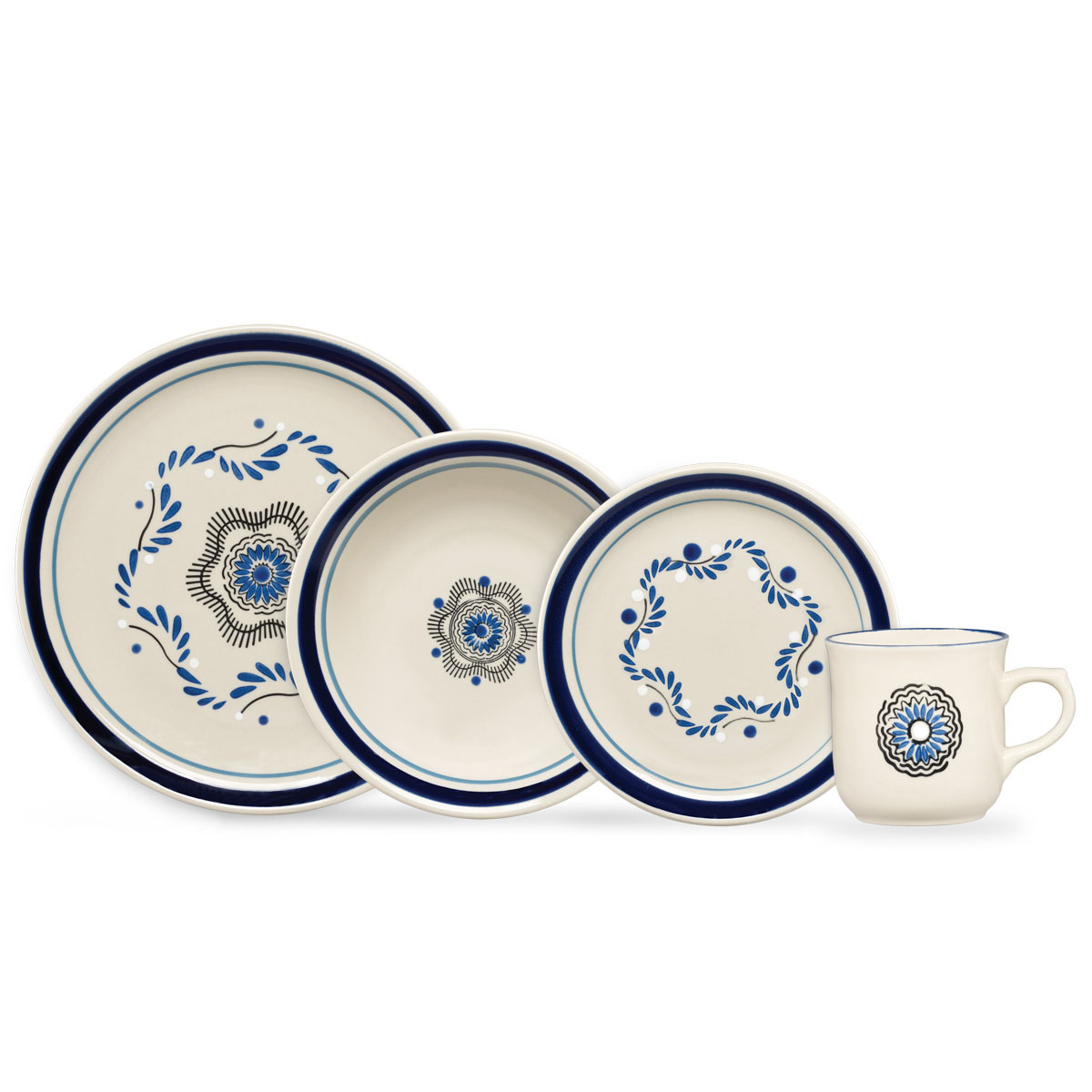 Vajilla 12 piezas modelo Victoria. Servicio para 4 personas con platos llanos, postres y tazones de acabado de... Ver más