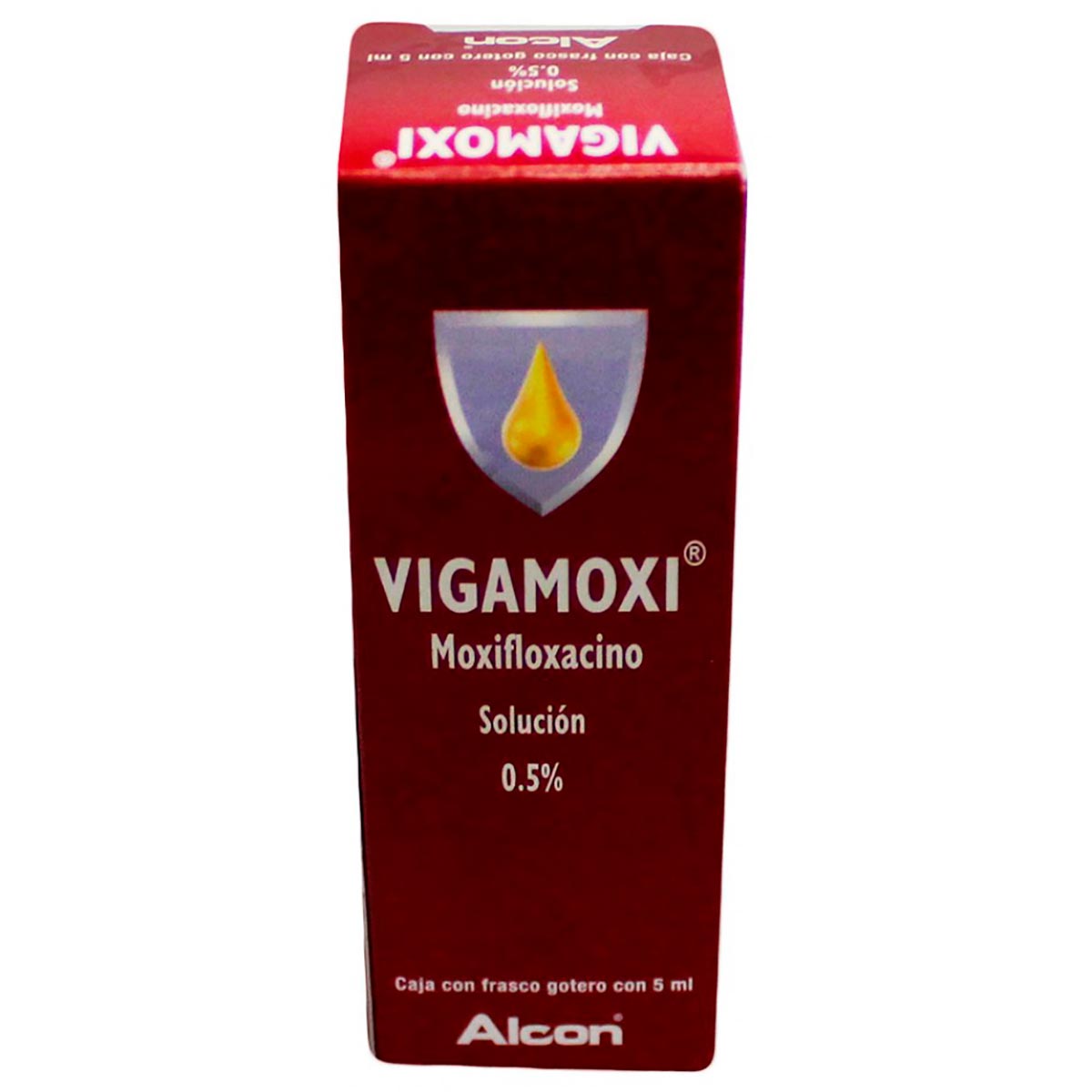 Solución oftálmica Vigamoxi al 5% para uso médico, con moxifloxacino como ingrediente activo. Indicada bajo pr...Ver más