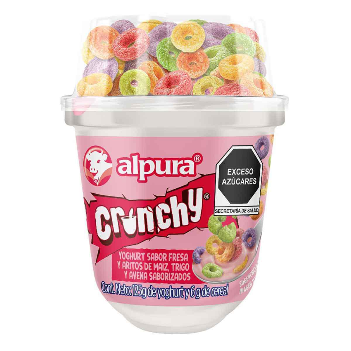 Yoghurt batido Alpura sabor fresa con aritos en presentación de 125 g. Lácteo con cereal incluido para desayun...Ver más